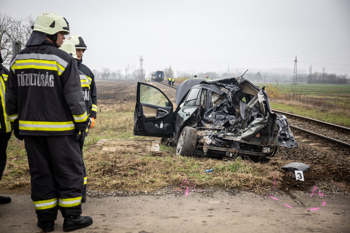 Brutális baleset a vasúti átkelőn Vasúti átjáróban ütközött egy személyautó és a Békéscsabáról Szeged felé tartó vonat hétfő délelőtt Békéscsabán, a Csorvási út közelében. Az eset a reggeli órákban történt, amikor a szerelvény éppen áthaladt az átkelőn, és a jármű vezetője nem tudott időben félreállni. A helyszínre a város hivatásos tűzoltóit riasztották, akik gyorsan intézkedtek. A tűzoltók áramtalanították a gépkocsit, és biztosították a vonat környezetét, hogy a mentés biztonságosan zajlhasson. Emellett a szerelvényen utazó mintegy hetven utas számára mentesítő buszokat állítottak rendelkezésre, hogy folytathassák útjukat. A mentők egy 50 év körüli férfit kórházba szállítottak. A műszaki mentés és helyszínelés idején szünetelt a vonatközlekedés. Fotó: BEOL. Nyomj egy lájkot is, ha tetszett a cikk Share december 2, 2025 13:35 Szerző mediatica Magyar Híradó Megosztás Facebook Twitter Google plus E-mailben Nyomtatás Tagek: Békéscsaba, Csorvási út, helyszínelés, közlekedési baleset, MÁV, mentesítő busz, műszaki mentés, sérülés, személyautó, tűzoltóság, utasszállítás, útlezárás, vasúti átjáró, vasúti baleset, vonat Következő hír: Tömegbaleset 8 sérülttel: újra kellett éleszteni az egyik utast Előző hír: Araújo krízisben: a Barcelona támogatja a játékos átmeneti visszalépését