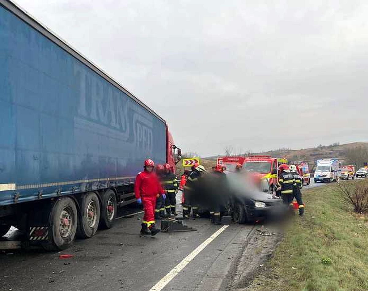 Öten meghaltak, amikor két kamion és egy személygépkocsi ütközött Fotó: ISU Kolozs megye. Öt férfi életét vesztette hétfő reggel egy súlyos közúti balesetben Kolozs megyében, a Kolozsvár melletti Magyarszentpál térségében, a DN1F jelzésű országúton, ahol két teherautó és egy személygépkocsi ütközött össze. A tragédia következtében a forgalmat mindkét irányban teljesen lezárták, a hatóságok pedig kerülőutakat jelöltek ki a közlekedők számára. A Kolozs megyei katasztrófavédelem tájékoztatása szerint a személyautóban utazó öt férfit a tűzoltók emelték ki a roncsok közül, azonban mindannyian olyan súlyos sérüléseket szenvedtek, amelyek következtében életüket vesztették. A mentőcsapatok hosszú ideig dolgoztak a helyszínen a beszorult áldozatok kiszabadításán. A balesetről érkező első jelentések még hat sérültről szóltak, és több embert eszméletlen állapotban találtak a járművekben. A helyszínre négy műszaki mentőegységet, két SMURD-mentőautót és két mentőszolgálati egységet vezényeltek ki, valamint egy rohammentő helikopter érkezését is várták a zsibói légimentő bázisról. A hatóságok a forgalmat elterelték a Kolozsvár és Zilah közötti szakaszon. A személyautók egy helyi úton kerülhetik ki a lezárt útszakaszt Magyarszentpálnál, míg a teherforgalmat hosszabb kerülőkre irányítják: Kolozsvár felől Bánffyhunyadig a DN1-en, majd a DN1G-n Zsobok irányába, onnan pedig Zilah felé haladhatnak tovább. Az ellenkező irányban Zilah felől Magyaregregy, Szilágykapu, Almásszentmihály és Zsobok érintésével, majd Bánffyhunyadon át lehet eljutni Kolozsvárra. A rendőrség vizsgálja a baleset körülményeit, a forgalom helyreállítása pedig a mentési és helyszínelési munkálatok befejezése után várható. Nyomj egy lájkot is, ha tetszett a cikk Share március 30, 2026 8:43 Szerző mediatica Kékfény Megosztás Facebook Twitter Google plus E-mailben Nyomtatás Tagek: baleset, Bánffyhunyad, DN1F, forgalomelterelés, halálos baleset, kerülőút, kolozs megye, kolozsvár, közúti tragédia, magyarszentpál, mentőhelikopter, műszaki mentés, rendőrségi vizsgálat, smurd, személygépkocsi, teherautó, tűzoltók, ütközés, útlezárás, Zilah Következő hír: Kiesett a mozgó autóbuszból egy iskolai kiránduláson részt vevő 15 éves lány Előző hír: XIV. Leó pápa: Krisztus a keresztről kiáltja az embereknek, hogy tegyék le a fegyvert