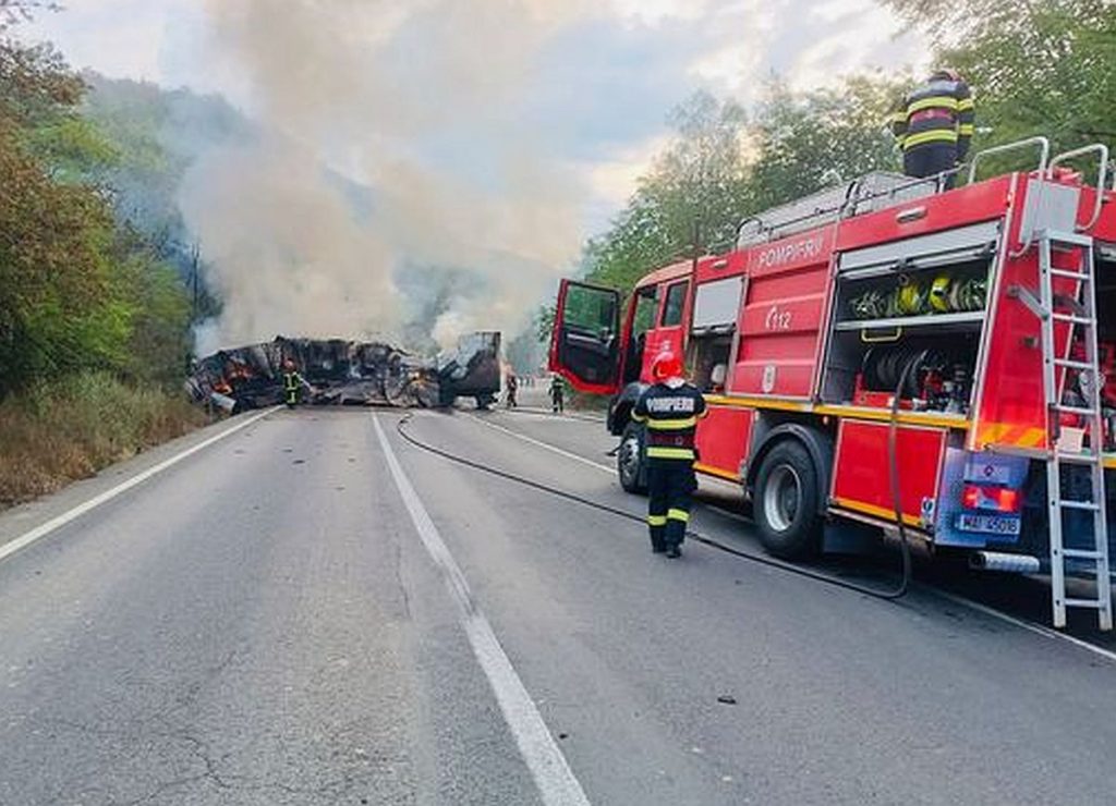 Tűzbe borult egy kamion a 7-es főúton – teljes útzár, ketten kórházban pánikroham miatt Fotó: ISU Arad. Súlyos közlekedési baleset bénította meg a forgalmat a DN7-es országút Arad megyei szakaszán, kedd reggel. Egy kamion, műszaki meghibásodást követően, hídpillérnek ütközött, majd lángra kapott. Az eset következtében a forgalmat teljesen leállították a Tótvárad és Soborsin közötti útszakaszon. A katasztrófavédelem gyors beavatkozása Az Arad Megyei Katasztrófavédelmi Felügyelőség (ISU Arad) tájékoztatása szerint a riasztás 7:15-kor érkezett. A helyszínre a berzavai egység két tűzoltóautóval és egy SMURD-mentővel vonult ki, amelyhez egy mentőszolgálati rohamkocsi is csatlakozott. Amikor a tűzoltók megérkeztek, az egész kamion lángokban állt, a tűz rendkívül intenzíven égett, és fennállt a veszélye annak, hogy továbbterjed a környezetre is. Fotó: ISU Arad. Az utasoknak sikerült kimenekülniük A sofőrnek és két utasának sikerült időben elhagynia a járművet, így közvetlen sérülést senki nem szenvedett. A tűzoltók közlése szerint ugyanakkor a két utas súlyos pánikrohamot kapott a drámai események közepette. Őket a helyszínen ellátták, majd további kivizsgálásra és megfigyelésre kórházba szállították. A kamion teljesen kiégett Az oltási munkálatok sikerrel jártak, a tűz nem terjedt át más járművekre vagy környező objektumokra, azonban a kamion teljes egészében megsemmisült. A szakemberek szerint a balesetet egy hirtelen műszaki meghibásodás idézhette elő, amely miatt a jármű letért az útról és a hídpillérnek csapódott. Teljes útzár a fő közlekedési útvonalon A rendőrség és a közútkezelő tájékoztatása alapján a DN7-es főút érintett szakaszán, a 461-es kilométerszelvénynél, teljes útzárat rendeltek el. Az ország egyik legforgalmasabb tranzitútvonala kedd délelőtt hosszú kilométereken át megbénult, több tucat kamion és személyautó vesztegelt az út mentén. A hatóságok közölték: a forgalmat csak az oltási munkálatok és a roncs eltávolítása után indítják újra, addig a közlekedőknek kerülőutakat kell használniuk. Újranyitás a parkolón át A közlekedés várhatóan fokozatosan áll helyre. A forgalmat a tűz teljes felszámolása után egy közeli parkolón át terelik majd, így a közlekedés részlegesen újra megindulhat. A közútkezelő arra kéri a sofőröket, hogy legyenek türelmesek, és kövessék a helyszínen irányító rendőrök utasításait. Szerencsés kimenetel – de komoly figyelmeztetés Bár személyi sérülés nem történt, az eset újabb figyelmeztetés a közúti közlekedés veszélyeire. A kamion teljes kiégése rávilágít arra, milyen súlyos következményei lehetnek egy látszólag apró műszaki hibának. A hatóságok ezért ismét felhívták a figyelmet arra, hogy a járművek rendszeres műszaki ellenőrzése elengedhetetlen a hasonló szerencsétlenségek megelőzése érdekében. Nyomj egy lájkot is, ha tetszett a cikk Share szeptember 9, 2025 12:47 Szerző mediatica Kékfény Megosztás Facebook Twitter Google plus E-mailben Nyomtatás Tagek: Arad, DN7, forgalomkorlátozás, ISU Arad, kamiontűz, katasztrófavédelem, közlekedési baleset, Románia hírek, smurd, útzár Következő hír: Izrael kiürítteti Gázavárost – újabb katonai műveletre készül a hadsereg Előző hír: 12 órás kálvária a vasúton: 80 kilométer 552 perc késéssel és még egy vagon is elveszett